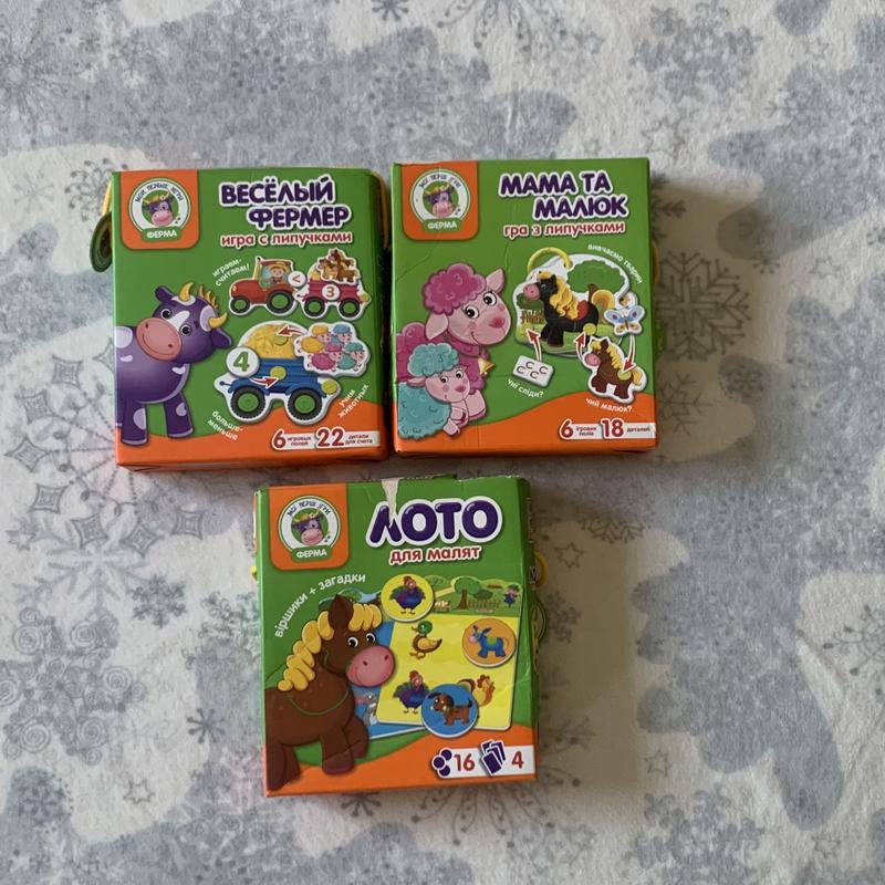 Розвиваючі ігри на липучках + лото На лото немає 1 карточки , решта усі детальки в комплекті Ціна за все разом