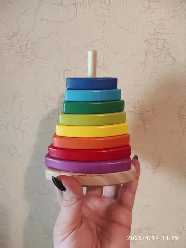 Обучающая игрушка, отлично подходящая для развития координации рук и глаз, творческих способностей, развития интереса и внимания, логического мышления и обучения чтению. 10 разноцветных деревянных кубиков треугольной формы. 14 см x 9 см Ш Есть очень много игрушек и одежды для мальчика в прекрасном состоянии. Спрашивайте!