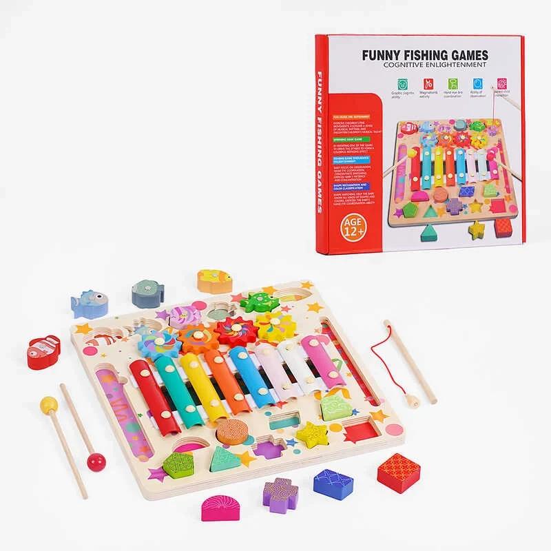 Развивающая доска-сортер с ксилофоном и магнитной рыбалкой