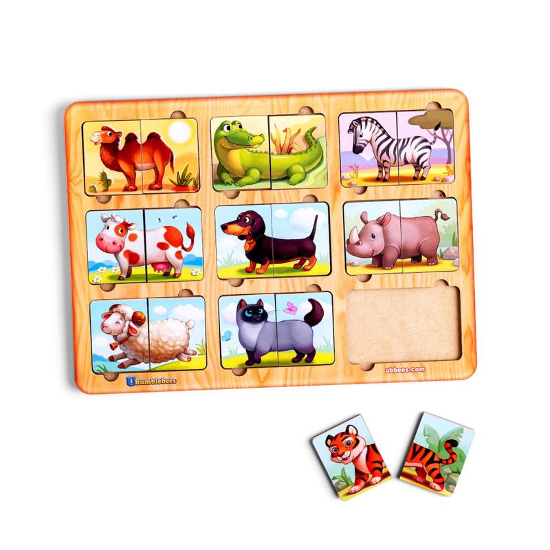 Деревянный пазл-сортер "удивительные зверята" ubumblebees (псд162) psd162, 9 животных