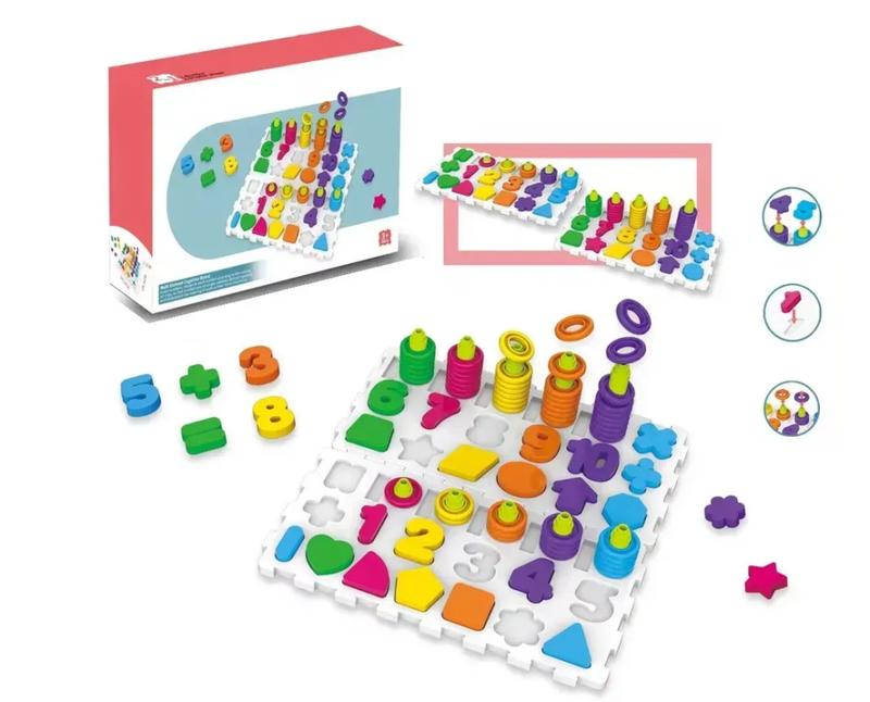 Как помочь малышу легко и быстро выучить буквы и цифры? Конечно же, в игре. Простая, на первый взгляд, рамка Логика-вкладыш. замечательное пособие для изучения и развития. В комплекте 2 доски, которые можно скреплять между собой в произвольном порядке, и более 100 элементов (вкладки и кольца). С такой игрой ребенок легко и просто выучит цифры от 0 до 10, геометрические фигуры, буквы английского алфавита, научиться составлять двузначные числа, составлять математические примеры и решать их. Столбики с разноцветными кольцами станут отличной альтернативой знакомым всем счетам, а разнообразные фигурки можно использовать как шаблоны во время рисования. Предложите малышу разложить все элементы по своим местам, называя их при этом или озвучивая цвет элементов. Используйте детали отдельно в других развивающих играх или комбинируйте с аналогичными наборами.