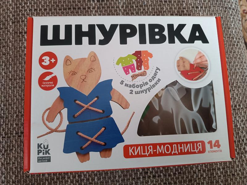 Детская игра "Кника -модница".Шнуровка "Котик-модница" 900026 товар сочетает высокое качество, стильный дизайн и надежность. Изготовлен с использованием современных материалов, он обеспечивает длительную эксплуатацию и максимальный комфорт. Шнуровка "Котик-модница" 900026 станет отличным выбором для подарка или для собственного использования. --- 🧵 Деревянная шнуровка "Корица-Модница" - развивающая игра для детей 3+ 🔸 Описание товара: Развивающая шнуровка "Кника-Модница" - это отличный набор для малышей, который сочетает игру, творчество и развитие мелкой моторики. В комплекте - деревянная фигурка кишки и 5 наборов одежды, которые можно комбинировать и пришнуровывать разными способами. Благодаря этому ребенок учится сосредоточенности, логике и координации движений. 🔸 Комплектация: - 1 фигурка кишки с отверстиями для шнуровки - 5 комплектов одежды (рубашки, штанишки, обувь) - 2 шнуровки (желтая и бежевая) - Всего 14 элементов 🔸 Рекомендуемый возраст: от 3 лет 🔸 Материал: натуральное дерево, безопасные краски 🔸 Развивает: - мелкую моторику - воображение и креативность - навыки самостоятельного выбора - логическое мышление 🔸 Особенности: - Можно комбинировать одежду по настроению или задачам: "Корица идет в гости", "Корица гуляет", "Что подходит больше всего?" - Шнуровка - как первый шаг к навыкам самостоятельного одевания - Эстетический дизайн, приятный на ощупь материал 🔸 Виробник: KUKPIK — "the wood we love"