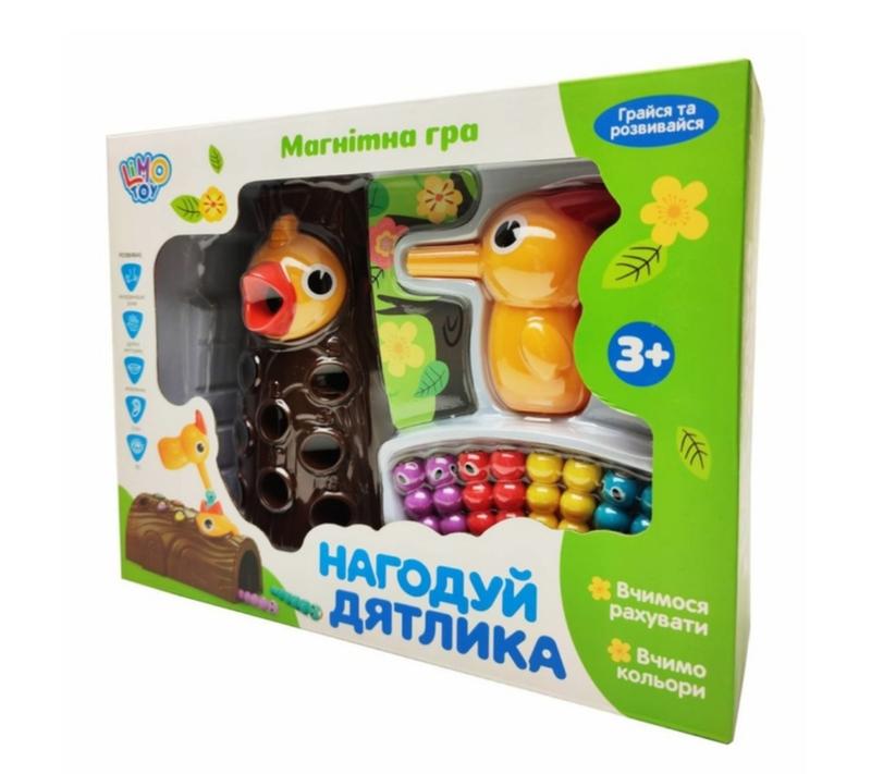 Це хіт, який не втрачає свою популярність. Якщо у вас ще немає такої гри, не впустіть можливість, замовляйте поки є в наявності, дитина точно буде в захваті. Магнітна гра Нагодуй дятла 27х21х10 см Дерево з дятлом і магнітними черв'ячками. Дорослий дятел дзьобом дістає черв'яків (магніт добре тримає) з дерева. Чим корисна ця гра? Розвиток дрібної моторики рук Тренування системи "рука-око" Закріплюємо кольору (назви колір черв'яка, знайди черв'ячків однакового кольору)