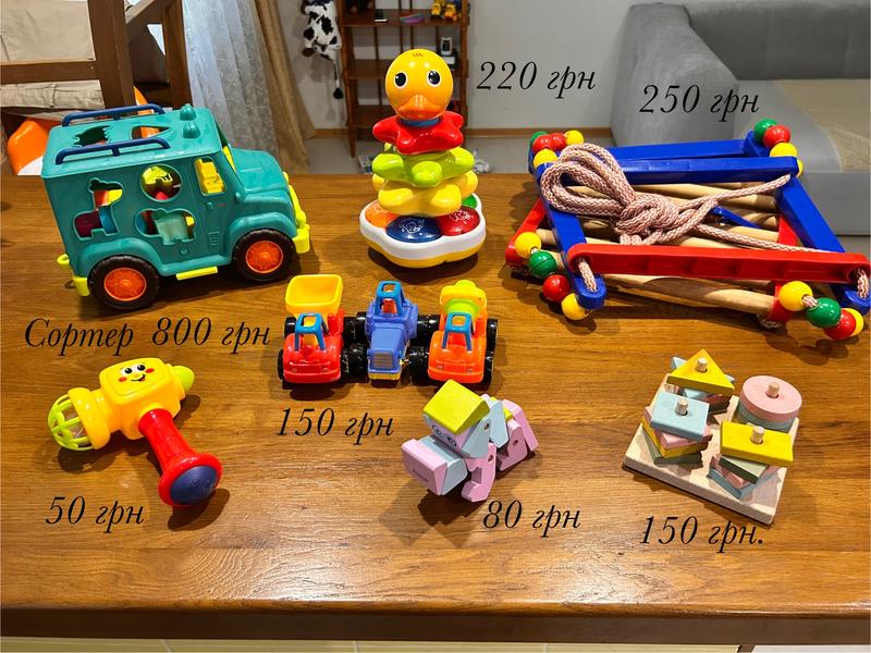 Іграшки розвиваючі, сортер, пірамідка, машинки
