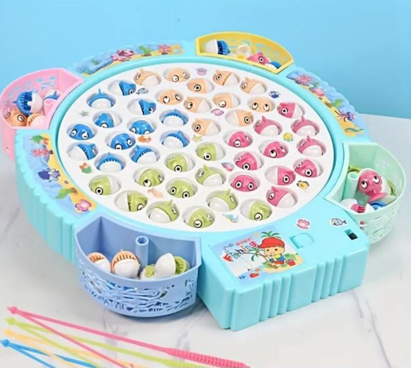 Отличная игра для развития мелкой моторики – Рыбалка, оснащенная звуковыми эффектами. При включении игровое поле начинает вращаться, рыбки то тут, то там начинают подниматься и открывать свои ротики. Главной задачей будет попробовать их поймать с помощью удочек. Съемные рыбки можно складывать в удобные и вместительные отсеки-их здесь 4 шт. Для удочек также предусмотрены свои ниши. В эту рыбалку можно весело играть на скорость всей семьей. Игра поможет развить ловкость, натренировать усидчивость и внимание. Красивый и яркий дизайн а также веселая музыка понравится малышке. Режим музыки можно отключить.Рыбки разного цвета, что поможет малышу запомнить названия цветов или же ловить рыбок определенного цвета. В комплект входить: Рибки 45шт. Вудки 4шт Подставка с отсеками. Игрушка работает от 3-х батареек типа "АА" - прилагаются в комплекте