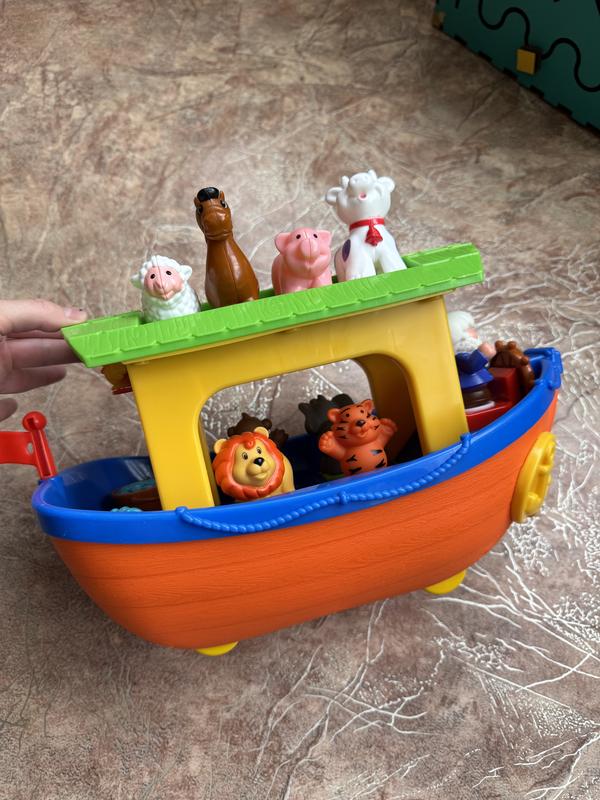 Ковчег Ноя озвучений російською мовою. В ідеальному стані, все справно працює, вже стоять батарейки. Є один нюанс - загубили фігурку жирафа. Але кнопка працює, звук жирафа озвучується) Була улюбленою іграшкою, допомагає у вивченні тваринок і їхніх звуків. Вік: 1-4 роки Крім фігурки Ноя, до комплекту входять фігурки тварин, які читають віршики російською мовою та видають відповідні реалістичні звуки. Віршики та пісні познайомлять дитину з назвами та характеристиками тварин, допоможуть краще пізнати навколишній світ. Ігровий набір не тільки розважить дитину, але і допоможе в розвитку таких важливих для малюка навичок: мовлення, логіка, кругозір, пам'ять, музичний слух, дрібна моторика. Живлення: 2 батареї типу АА Розмір: 32 х 20 х 18 см. Ціна нового від 1700 грн
