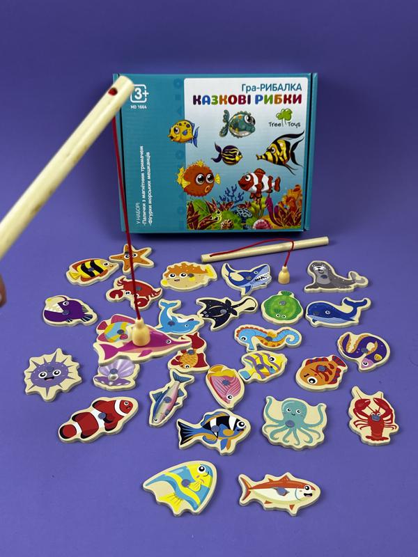 Дерев'яна іграшка Риболовля (40шт) магнітна, морські мешканці, вудочки 2 шт., кор., 21,5-17-