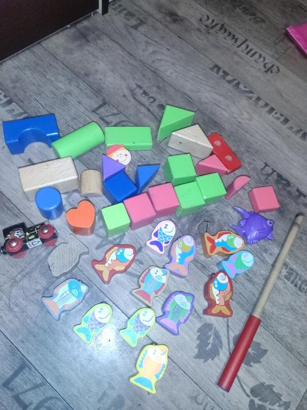 из данного набора можно постриить постройки, деревянные игрушки экологичные, деревянные рыбки с магнитами для рыболова
