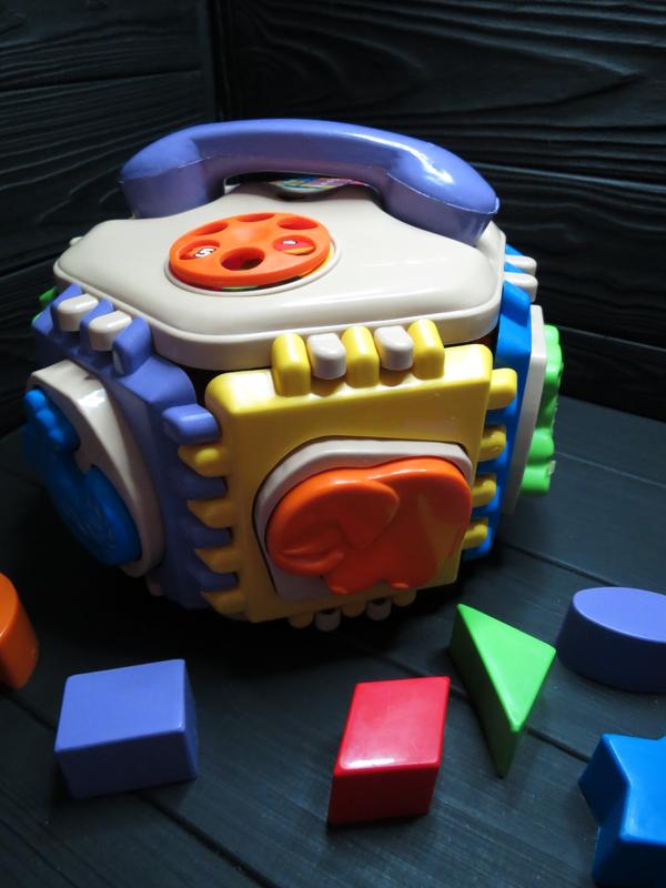 Сортер - це той вид розваг, який зможе одночасно розвивати і розважати вашого малюка. Іграшка складається із 6-ти бічних сторін з фігурами різної форми, в які вставляються фігурки тварин та стінки з отворами різної форми для 6-ти геометричних фігур, телефонна трубка циферблат. Щоб скласти шестигранник, дитині потрібно з'єднати його стінки, які являють собою 6 різнокольорових елементів. Крім того, в кожній стінці куба є фігурні отвори, до яких потрібно підібрати фігурки тварин відповідної форми. Підбираючи фігурки під отвори, дитина вивчає форми і кольори, вчиться порівнювати і аналізувати, розвиває пам'ять і логіку. З елементів куба можна також складати інші конструкції. Створення конструкцій дуже корисно для розвитку творчого потенціалу дитини. Яскраві кольори допоможуть вашій дитині розвивати зорові навички, а велика кількість деталей Если безопасная оплата с укр почтой полная оплата сразу мне на карту если безопасная оплата новой почтой можно после оплату
