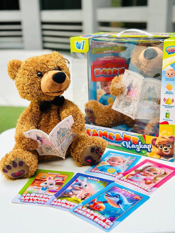 π§ΈΠΡΠ³ΠΊΠ°Ρ ΠΈΠ½ΡΠ΅ΡΠ°ΠΊΡΠΈΠ²Π½Π°Ρ ΠΈΠ³ΡΡΡΠΊΠ° Π΄Π»Ρ ΠΏΠΎΠ»Π΅Π·Π½ΠΎΠ³ΠΎ ΠΈ ΠΈΠ½ΡΠ΅ΡΠ΅ΡΠ½ΠΎΠ³ΠΎ Π΄ΠΎΡΡΠ³Π° π©· ΠΡΠΌΠ΅Π΄Π½ΠΈΠΉ Π²Π΅Π΄ΠΌΠ΅Π΄ΠΈΠΊπ» Π²ΠΎΡΠΏΡΠΎΠΈΠ·Π²ΠΎΠ΄ΠΈΡ ΡΠΊΠ°Π·ΠΊΠΈ, ΡΠΊΠΎΡΠΎΠ³ΠΎΠ²ΠΎΡΠΊΠΈ ΠΈ Π·Π²ΡΠΊΠΎΠ²ΡΠ΅ ΡΡΡΠ΅ΠΊΡΡ. Π‘ΡΠΎΠΈΡ ΡΠΎΠ»ΡΠΊΠΎ Π½Π°ΠΆΠ°ΡΡ Π½Π° ΡΠ΅Π½ΡΠΎΡΠ½ΡΠ΅ βΠΏΠΎΠ΄ΡΡΠΊΠΈβ Π·Π°Π΄Π½ΠΈΡ Π»Π°ΠΏΠΎΠΊ πΎ , ΠΊΠ°ΠΊ ΠΈΠ³ΡΡΡΠΊΠ° ΠΏΡΠ΅Π²ΡΠ°ΡΠΈΡΡΡ Π² Π½Π°ΡΡΠΎΡΡΠ΅Π³ΠΎ ΡΠ°ΡΡΠΊΠ°Π·ΡΠΈΠΊΠ°. πΠ‘ ΠΏΠΎΠΌΠΎΡΡΡ ΠΏΠ΅ΡΠ΅ΠΊΠ»ΡΡΠ°ΡΠ΅Π»Ρ ΡΠΊΠ°Π·ΠΎΠΊ ΠΈ ΡΠ΅Π³ΡΠ»ΡΡΠΎΡΠ° Π³ΡΠΎΠΌΠΊΠΎΡΡΠΈ ΠΏΡΠΎΡΠ»ΡΡΠΈΠ²Π°Π½ΠΈΡ ΠΏΠΎΡΡΠΈΡΠ΅Π»ΡΠ½ΡΡ ΠΈΡΡΠΎΡΠΈΠΉ ΠΈ ΡΠΊΠΎΡΠΎΠ³ΠΎΠ²ΠΎΡΠΎΠΊ ΡΡΠ°Π½Π΅Ρ Π΅ΡΠ΅ ΠΊΠΎΠΌΡΠΎΡΡΠ½Π΅Π΅. Π Π½Π°Π±ΠΎΡΠ΅ ΡΠ°ΠΊΠΆΠ΅ Π΅ΡΡΡ 5 ΠΊΠ°ΡΡΠΎΡΠ΅ΠΊ Ρ Π΄ΠΎΠΏΠΎΠ»Π½ΠΈΡΠ΅Π»ΡΠ½ΡΠΌΠΈ ΡΠΊΠ°Π·ΠΊΠ°ΠΌΠΈ ΠΈ ΡΠΊΠΎΡΠΎΠ³ΠΎΠ²ΠΎΡΠΊΠ°ΠΌΠΈ Π΄Π»Ρ ΡΡΠ΅Π½ΠΈΡ. πΆΠΎΠ·Π²ΡΡΠΈΠ²Π°Π½ΠΈΠ΅ Π½Π° ΡΠΊΡΠ°ΠΈΠ½ΡΠΊΠΎΠΌ ΡΠ·ΡΠΊΠ΅; πΆ15 Π°ΡΠ΄ΠΈΠΎΡΠΊΠ°Π·ΠΎΠΊ (ΠΎΠ±ΡΠ°Ρ ΠΏΡΠΎΠ΄ΠΎΠ»ΠΆΠΈΡΠ΅Π»ΡΠ½ΠΎΡΡΡ Π°ΡΠ΄ΠΈΠΎΠ΄ΠΎΡΠΎΠΆΠΊΠΈ - 35 ΠΌΠΈΠ½ΡΡ); πΆ5 ΠΊΠ°ΡΡΠΎΡΠ΅ΠΊ Ρ ΡΠΊΠ°Π·ΠΊΠ°ΠΌΠΈ ΠΈ ΡΠΊΠΎΡΠΎΠ³ΠΎΠ²ΠΎΡΠΊΠ°ΠΌΠΈ Π΄Π»Ρ ΡΡΠ΅Π½ΠΈΡ; πΆΡΠΊΠΎΡΠΎΠ³ΠΎΠ²ΠΎΡΠΊΠΈ ΠΈ Π·Π²ΡΠΊΠΎΠ²ΡΠ΅ ΡΡΡΠ΅ΠΊΡΡ; πΆΠΏΠΎΠ΄Π²ΠΈΠΆΠ½ΡΠΉ ΡΠΎΡΠΈΠΊ; πΆΠΊΠ½ΠΎΠΏΠΊΠΈ Π½Π° Π»Π°ΠΏΠΊΠ°Ρ Π΄Π»Ρ Π²ΠΎΡΠΏΡΠΎΠΈΠ·Π²Π΅Π΄Π΅Π½ΠΈΡ Π·Π²ΡΠΊΠ°; πΆΠΏΠ΅ΡΠ΅ΠΌΠΈΠΊΠ°Ρ ΠΊΠ°Π·ΠΎΠΊ; πΆΡΠ΅Π³ΡΠ»ΠΈΡΠΎΠ²ΠΊΠ° Π³ΡΠΎΠΌΠΊΠΎΡΡΠΈ; πΆΡΠ°Π±ΠΎΡΠ°Π΅Ρ ΠΎΡ 3-Ρ Π±Π°ΡΠ°ΡΠ΅Π΅ΠΊ "ΠΠ" (Π½Π΅ ΠΏΡΠΈΠ»Π°Π³Π°ΡΡΡΡ).