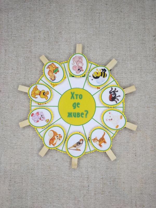 Розвиваюче ігрове коло "Хто де живе?" з прищіпками. Діаметр 20 - 25 см, пошита з фетру, малюнок не линяє - можна прати. Дітям до вподоби пізнавати світ за допомогою гри, а наші яскраві безпечні іграшки їм в цьому допоможуть.