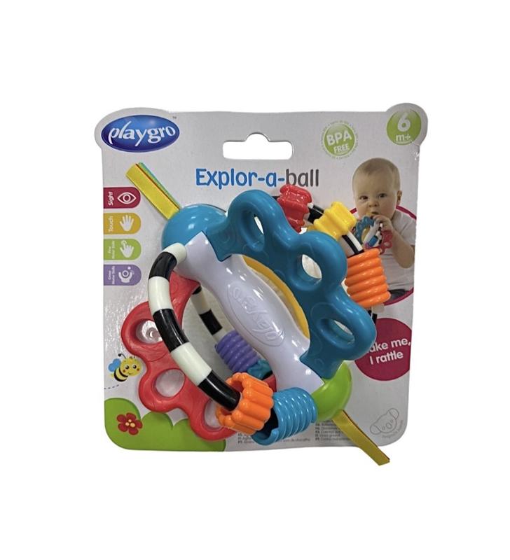 Навчальна іграшка Playgro М’ячик Пізнайка (4082426). Компанія Playgro - створює стильні інноваційні іграшки для малюків, які забезпечують розвиток через гру. М’ячик Playgro Пізнайка - розвиваюча іграшка для найменших. М’ячик має намистинки і стрічки, які сприяють розвитку дрібної моторики крихти. Під час гри намистинки перекочуються і м’ячик гримить, як справжнє брязкальце. Форма м’ячика з дуг оптимальна для захоплення дитячою ручкою з будь-якого боку. Елементи різноманітної форми прекрасно розвивають дрібну моторику рук малечі. Яскраве забарвлення дозволить вам вивчити з малюком назви різних кольорів і відтінків. Перебираючи каблучки і дірочки, малюк розвиває своє тактильне сприйняття. М’ячик стане відмінним гризуном під час активного прорізування зубів. Основний матеріал м’ячика — пластик. Він не токсичний, не містить шкідливих елементів і безпечний для діток з самого народження. Розмір (ДхВхШ): 26х19х6 см