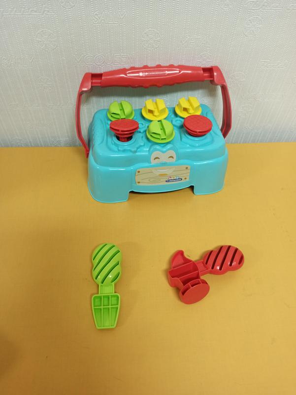 Развивающая игрушка Clementoni "Workbench" Вставляйте гвозди, болты и шурупы в отверстия, крутите или пристукуйте, используя инструменты; переверните верстак и он превратится в корзину для хранения и переноски принадлежностей; изготовлено из переработанного пластика, согласно программе "Играй ради будущего"; рекомендовано для детей от 10 месяцев