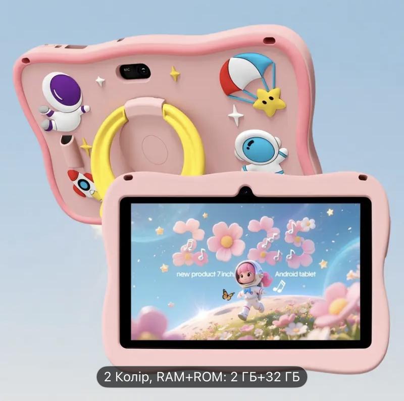 Дитячій планшет на операційній системі android 13 Характеристики: - Розмір дисплея: 7 дюймів - Яскравий HD-дисплей IPS з роздільною здатністю 1024x600 - гучний чіткий звук - Батьківський контроль - операційна система: Android 13 - чотириядерний процесор забезпечує швидкий запуск додатків, плавне відео та відмінну загальну продуктивність - оперативна пам'ять: 4GB - жорсткий диск: 32GB .- Bluetooth 5.0 - Камери: 5 Мп тильна, 2 Мп фронтальна. - Підтримує micro SD до 512 ГБ для зберігання фотографій, музики, відео - ємність акумулятора: 3500мА · год - роз'єм на навушники Комплектація: Планшет Кабель USB Type-C Фірмова коробка