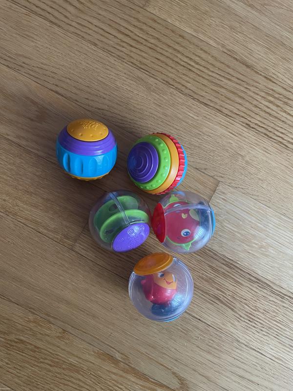 Набор детских развивающих шариков Bright Starts - разные фактуры и наполнения для сенсорного развития малышей • В наборе 5 шариков. • Яркие цвета, разные текстуры, внутри игрушки-шумелки. • Отлично развивают моторику, внимание и слух. • Подходят для малышей с 6 мес.