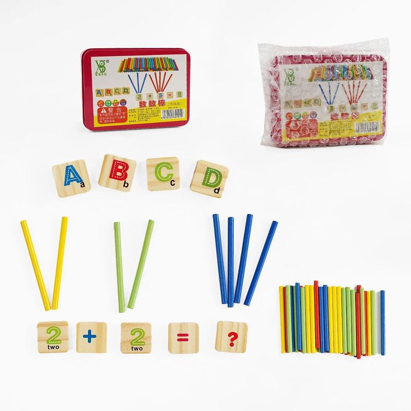 Деревянная математика с-65792 цифры и буквы в металлической коробке