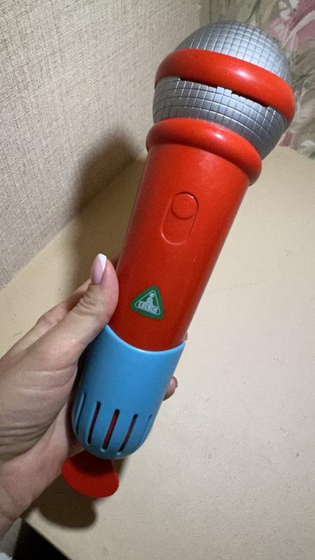 На изображении детский игрушечный микрофон ELC (Early Learning Centre) Echo Microphone. Это игрушка, которая создает эффект эха без использования батареек. Внутри микрофона находится спираль, которая вибрирует от голоса ребенка, создавая эффект эха. Микрофон предназначен для развития речи и поощрения творческого самовыражения у детей. Он легкий и удобный для маленьких детских рук.