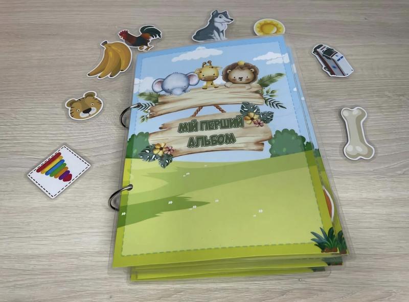 Первый Альбом В альбоме 12 страниц: Овощи Фрукти Домашние животные Дикие животные Кто где живет? Кто что ест? Веселі тваринки Профессии Геометрические фигуры Кольори Поры года Чистим зубки Формат: А4 - 700 грн A5 - 600 грн Язык: украинский При желании именно обложка, также можно добавить фото вашего малыша. Игры, которые не боятся воды, грязи и зубчиков
