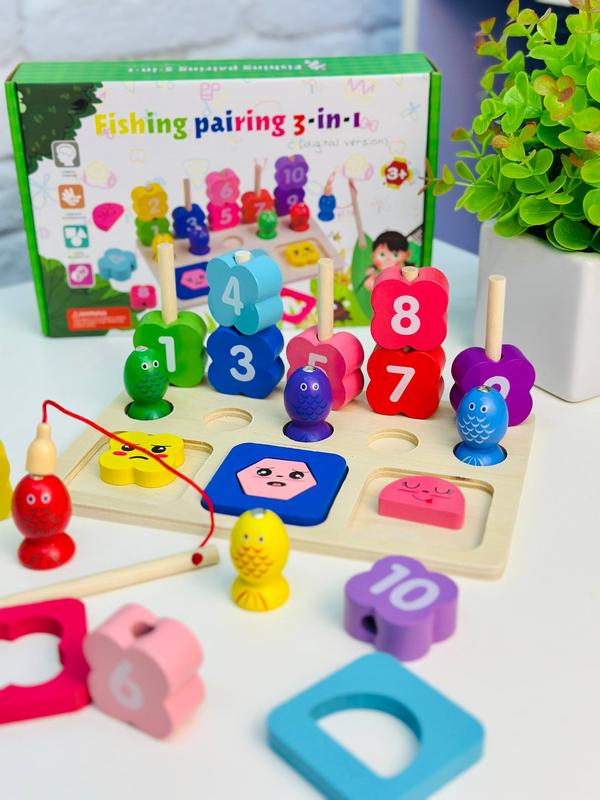 Навчальна дощечка 3 в 1 ☺️ Артикул: 2542 Гра розвиває пам'ять, мислення 🧐, дрібну моторику рук є ✋ , координацію в просторі 🌍, сенсорику і просто приносить масу задоволення 🤗 📌У набір входить: – рибалка магнітна – сортер фігурки – пірамідки різної складності