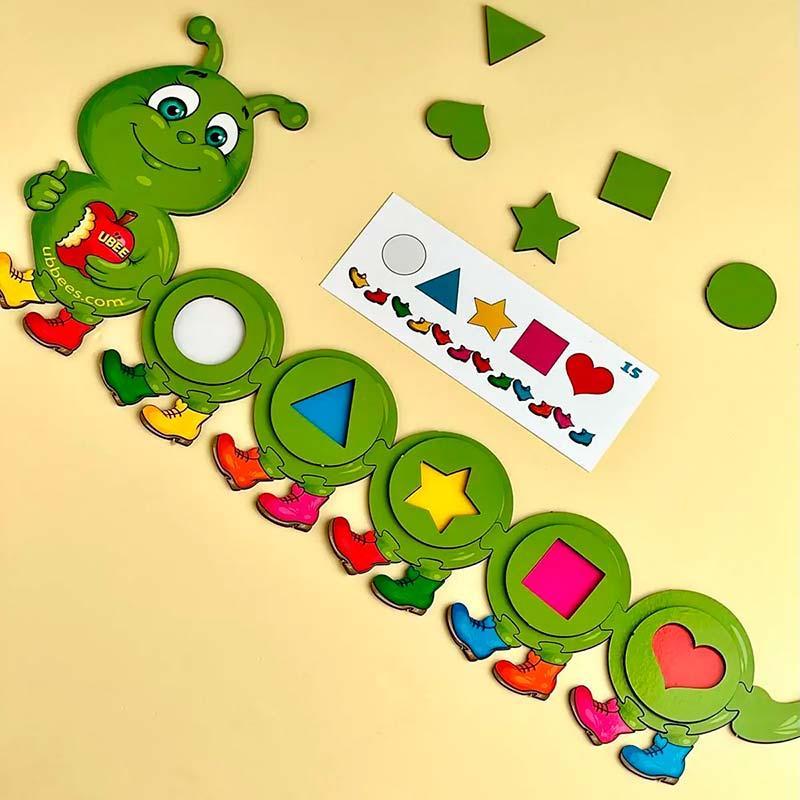 Детская игра с карточками ubee "гусеница: собери по образцу" деревянная псд245