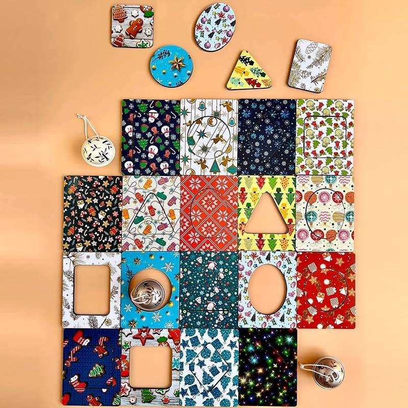Развивающая игра досточки сегена: ubee "новогодние узоры – геометрические фигуры" из дерев...