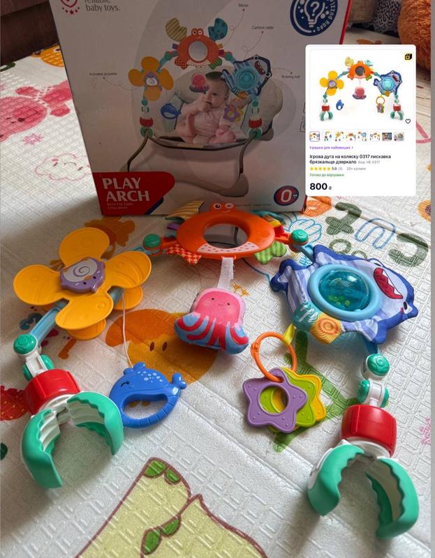 🎠 Ігрова дуга на коляску / ліжечко / автокрісло Весела й яскрава дуга, яка точно сподобається малюку! 🧸 Іграшки шелестять, дзвенять і рухаються — стимулюють цікавість, зір і слух дитини. Легко кріпиться до коляски або ліжечка, тримається міцно, не сповзає. Підійде від перших місяців життя 👶