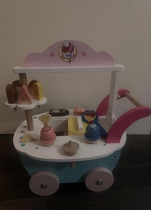 Дерев'яний візок для морозива в ігровій формі стимулює фантазію, творчість і здатність вживатися в різні ролі. Модель оснащена навісом та ручкою для штовхання. Морозильна камера обладнана кришкою, яка знімається. Також у наборі є ложки для морозива. Іграшка виконана з якісної деревини та покрита гіпоалергенними фарбами на водній основі. Від 2 років Матеріал Дерево Габарити та вага Габарити (ДхШхВ) 43.8×42×29.3 см Вага 2.55 кг