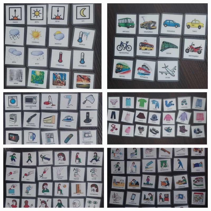 Все материалы применяются, но в очень хорошем состоянии. Размер карточек 4×4см с запаянными кромками. Эти карточки помогают детям выражать свои потребности и планировать день. Чем больше тем дешевле. В наличии: - Карточки "Игрушки", 14шт.= 60 - Карточки "Ежи в кофейне", 18шт. = 80 - Карточки "Громадские места", 26шт.= 115 - Карточки "Ежи: овощи", 24шт. = 105 - Картки "Їжа: снеки", 24шт. = 105 - Карточки "Ежи: фрукты", 18шт. = 80 - - Картки "Їжа"(2), 22шт. = 99 - Картки "Кольори", 12шт.= 55 - - Картки "Музика. Ритмика", 9шт. = 40 - Карточки "Школьные принадлежности", 16шт. = 70 - Картки "Час доби. Время года. Погода", 16шт. = 70 - Картки "Цифри", 10шт. = 45 - Карточки "Транспорт", 11шт. = 49 - Картки "Тварини", 18шт. = 80 - - Карточки "Птицы", 18шт. = 80 - - Картки "Посуд", 18шт. = 80 - Карточки "Одяг", 21шт. = 95 - - Картки "Комахи", 12шт. = 55 - Карточки "Физические упражнения", 9шт. = 40 Количество -19 шт.