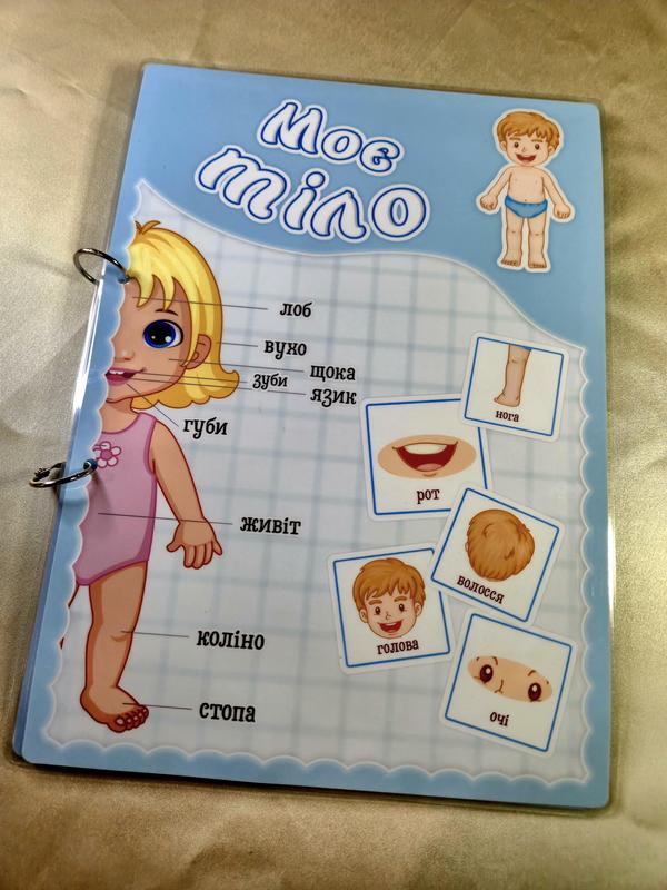 Цей альбом допоможе дитині у цікавій ігровій формі вивчити частини тіла, розширити словниковий запас та краще розуміти будову власного організму. Яскраві ілюстрації, великі фігурки хлопчика і дівчинки та зручні картки на липучках роблять навчання захопливим і дуже наочним. Усередині альбому: ✨️фігурки хлопчика та дівчинки; ✨️картки з назвами частин тіла: голова, волосся, очі, рот, вуха, руки, ноги, живіт, спина, пальці тощо; ✨️тренувальні завдання для запам’ятовування та закріплення. Альбом допоможе дитині: ✨️вивчити основні частини тіла; ✨️розвинути мовлення та словниковий запас; ✨️сформувати уявлення про себе та своє тіло; ✨️потренувати пам’ять, логіку та дрібну моторику; ✨️навчитися співставляти елементи та виконувати прості інструкції. Формат: А4 зручний, ламіновані сторінки. Кріплення: металеві кільця. Усі деталі на липучках, тому дитина легко може переставляти елементи скільки завгодно разів. Альбом ідеально підходить для раннього розвитку вдома, занять у садочку або як подарунок малюку 💙💗