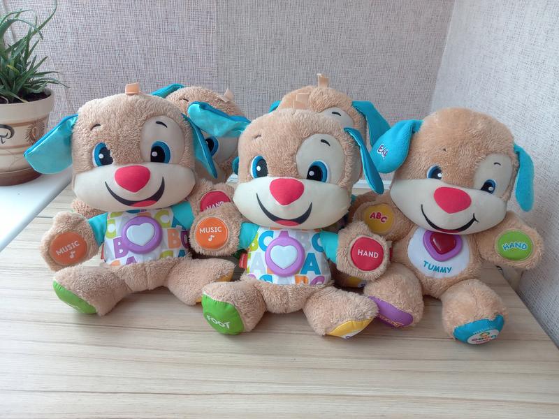 Умный щенок с технологией Smart Stages, позволяющий выбирать один из трех уровней игры, идеально подойдет к возрасту Вашего малыша. Веселые песни, звуки и фразы будут развлекать малыш, а лапы, животик, уши и сердце с подсветкой будут реагировать на каждое касание, уча буквам, цветам, счетам, частям тела и т.д. Кроме того игрушка помогает развивать чувства и мелкую моторику. Озвученные на английском языке Состояние очень хорошее. Один имеет нерабочее ушко Цена: по 350 грн, с нерабочим ушком 200 грн