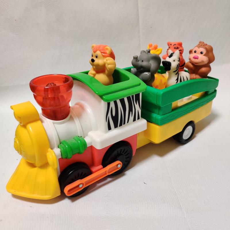 Игровой набор Kiddi Smart Паровоз Лимпо озвученный на украинском языке развлечет малыша мигающими огоньками, веселой музыкой, звуками животных и познакомит с обитателями джунглей При нажатии на трубу Паровоз едет вперед, при этом из трубы звучит задорное «Ту-тууууу!», звучат реалистичные звуки стука колес и тормозов В паровозе находятся 6 фигурок диких животных, которые по форме ножек ставятся на свои места по принципу сортера Если фигурку правильно поставить на свое место, при нажатии она издает соответствующий реалистичный звук, рассказывает стишки, а Лев-машинист поет песенку Игровой набор не только подарит малышу много положительных эмоций, но и в игровой форме поможет развить следующие навыки: - речь; - память; - логика; - кругозор; - музыкальный слух; - эмоциональное восприятие Питание: 3 батареи АА Стан - идеальный