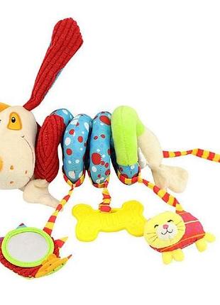Высокое качество для мягкого и удобного прикосновения без вреда. Висячие персонажи побуждают тянуть и сжимать их. Дополнительно закрепленный прорезыватель на игрушке поможет ребенку уменьшить зуд от растущих зубиков. Развивайте тактильные ощущения координацию рук и глаз ребенка естественным образом. Идеальная игрушка для автомобильного сиденья, детской коляски или кроватки.