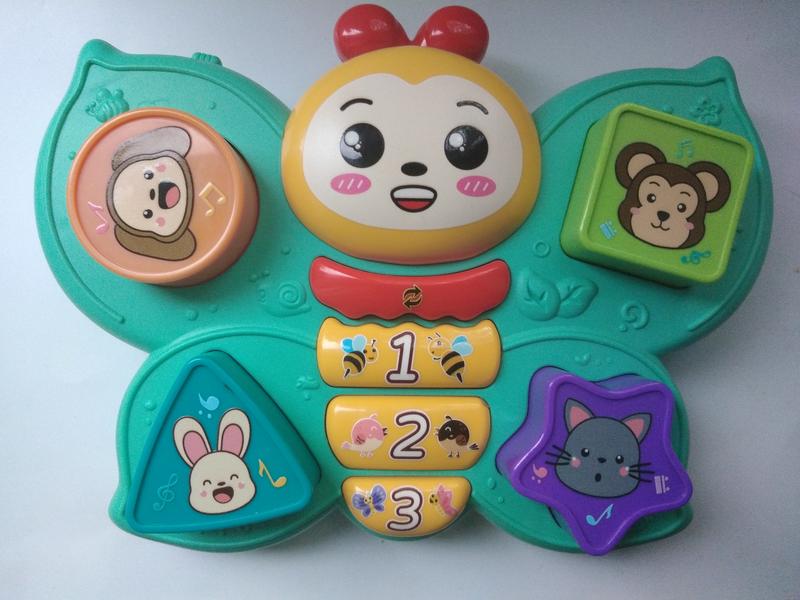 Музыкальный сортер бабочка имеет 4 фигурки сортера, песни, счет, пианино, сказки