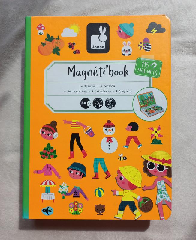 • Магнитный набор MagnetiBook - красивая развивающая игрушка, которая подойдет для детей от 3 лет. • Магнитный пазл в виде книги имеет красочный мотив, который привлечет внимание каждого ребенка. • Ваши дети будут развлекаться, собирая картинки из магнитных кусочков по шаблону, но дети также могут подключить собственную фантазию и собирать за собственным. • Дети угадывают время года и составляют декорации в это время года, для которых подбирают подходящую одежду и аксессуары. • Способствует развитию моторики, логического мышления, художественного вкуса и творческих способностей ребенка. • Практичная упаковка гарантирует, что игрушку будет удобно переносить, и дети будут развлекаться с ней не только дома, но и в длительных поездках. • Отделение внутри помогает хранить магниты и карточки упорядоченно. • Набор включает в себя 4 карточки с шаблонами и магниты. • Изготовлен из высококачественных материалов и безопасных для здоровья цветов. Состояние хорошее, не хватает нескольких магнитов и перепечатанная 1 карточка, в цену учитывала. 🎁При покупке 2-х и более вещей, скидка - 25% на вещи с меньшей стоимостью. Смотрите другие Мои объявления🛍 и пишите в сообщения 📩. Есть еще магнитная одежда, мозаика.