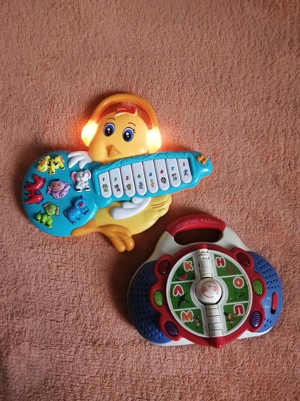 Музыкальное радио на українській мові, в очень хорошем состоянии, без деффектов, работает от трех пальчиковых батареек (не в комплекте), озвучивает буквы/слова, играет мелодия, мигает лампа на буквах. Музыкальное пианино с животными, музыка, свнт, звуки, без батареек, каждое по 149 грн Способы оплаты и доставки : Оформление заказа через кнопку купить ⚠️При оформлении услуги Безопасная оплата , отправка возможна Укрпочта либо Розетка *Оплата на карту приватбанк - отправка укрпочта, новая почта, мист экспресс