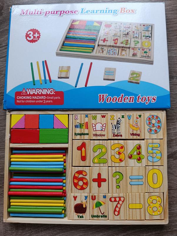 Вивчаємо цифри,прості логічні задачі з паличками, форми та англійський алфавіт. Все в одному ✴️ стан б/ в ідеальному Ціна 220грн з екологічних матеріалів ❗