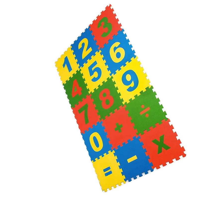 Коврик образовательный для обучения цифрам 40 х 60 см. Детский напольный коврик, состоящий из разноцветных квадратов. На каждом квадрате изображены цифры от 0 до 9 и основные математические символы, такие как сложение, вычитание, умножение, деление и знак равенства. Цвета яркие и контрастные -- красный, синий, зелёный и жёлтый, что делает его привлекательным для детей и способствует изучению цифр и простых математических действий в игровой форме. Можно выделить следующие преимущества такого коврика для детей: Обучение и познание: Коврик в игровой форме знакомит детей с цифрами и базовыми математическими операциями, что является отличной подготовкой к школе. Сенсорное развитие: Яркие, контрастные цвета способствуют развитию зрительного восприятия и учат различать цвета. Безопасность и комфорт: Мягкий материал обеспечивает комфортную и безопасную поверхность для игр, защищая от холода пола и смягчая падения. Развитие логического мышления: Ребёнок учится сопоставлять элементы, что тренирует его логику и пространственное мышление. Инструкция по обзору: Машинная стирка Форма: Прямоугольник материал: 100% Полиэфирное волокно Размер 40 х 60 см