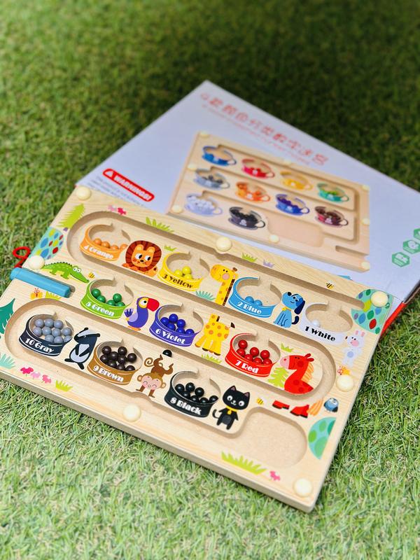 Дерев’яна магнітна дошка — захоплива навчальна гра, яка розвиває уважність та зосередженість. За допомогою спеціального магнітного стилуса дитина проводить кульки, збираючи їх у відповідні комірки за кольорами. Гра тренує дрібну моторику, посидючість і логічне мислення, даруючи водночас море задоволення! Особливості: - розміри дерев’яної основи: 23х14.5х1.3 см; - сортер магнітних кульок; - кольори і цифри; - назви кольорів англійською; - магнітний стилус для гри. Матеріал : Дерево Виробник : -