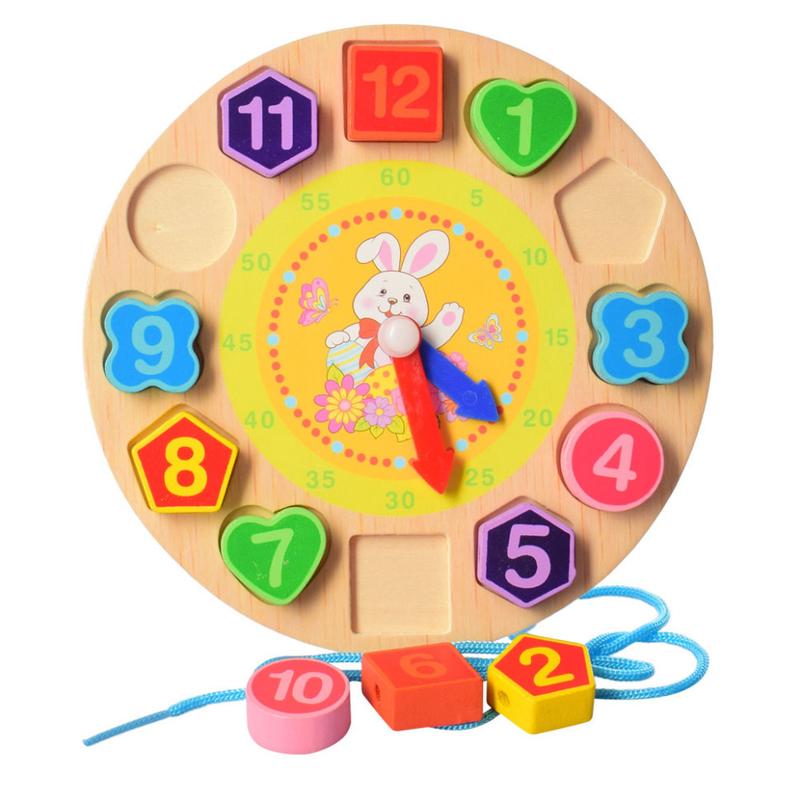 Вкладыши с геометрическими фигурами и шнуровка. Знакомимся с цифрами, фигурами, развиваем мелкую моторику. Красивые часики станут полезным аксессуаром в детской комнате, отличным тренажером для маленьких пальчиков! Выполненные из экологичной древесины, вкладыши-часы-шнуровка наполнят помещение приятным натуральным запахом. А также познакомят малыша с цифрами и разнообразными геометрическими фигурами. С такой игрушкой хорошо развивается моторика, координация, логическое мышление. Учить цифры с вкладышами-часами- шнуровкой не скучно, а весело! К тому же каждая фигурка оснащена дырочками. Таким образом детали циферблата превращаются в элементы шнуровки! В наборе: - деревянный циферблат с пластмассовыми стрелками. - 12 деревянных фигурок с цифрами и отверстиями для шнурования. - шнурок. Размер игрушки - 18х1,3 см