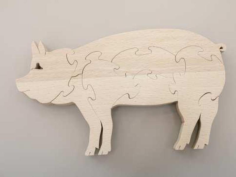 Фігурний дерев'яний пазл "свинка" 18х10 см ручної роботи з екологічного матеріалу / фігурн...