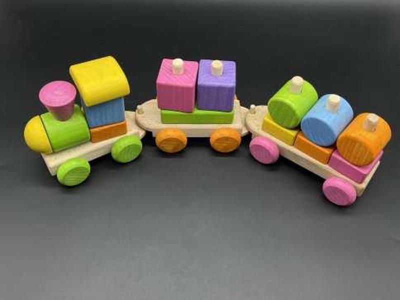 Дерев'яна дитяча іграшка "поїзд" з натурального дерева (паровозик і два вагони) / дерев'ян...
