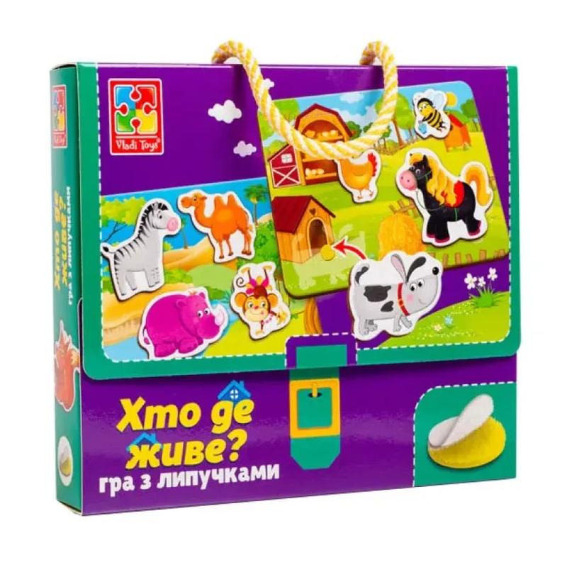 Вивчайте тварин та їхнє середовище проживання в цікавій ігровій формі! Кріпіть фігурки за допомогою липучок до гральних полів у позначені місця. Наприклад, беремо картку із фермерським пейзажем. Хто тут мешкає? Курочка, коник, бджілка. Шукаємо картонні фігурки з цими тваринами та кріпимо до картки за допомогою липучок. Готово! В процесі гри малюк потренує логічне мислення, пам'ять, мовлення та дрібну моторику. Комплектація: 4 поля для гри, 16 деталей, 32 липучки, інструкція.