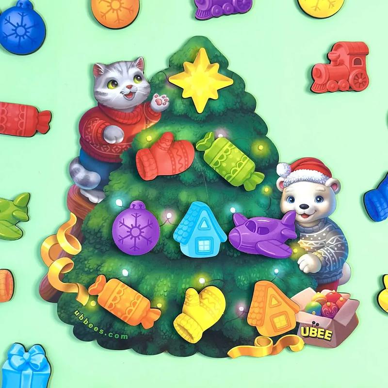 Занурте дитину в атмосферу зимових свят з яскравою ялинкою та різнокольоровими іграшками. Малюк прикрашає ялинку, обираючи завдання на картках, вчиться увазі, логіці та дрібній моториці, створюючи свої перші святкові композиції. * * * 📦 Що в наборі - Яскрава основа у формі ялинки (23 × 22 см) - 42 фігурки на липучках 7 кольорів: жовтий, помаранчевий, голубий, синій, зелений, фіолетовий, червоний - 10 двосторонніх карток із 20 завданнями різної складності: за зразком, силуетом, фрагментами - Зручне кріплення на липучках - Безпечні матеріали з якісною поліграфією * * * 🧠 Що вивчаємо - Розпізнавання кольорів та форм - Розвиток дрібної моторики рук і координації рухів - Увага, пам'ять і логічне мислення - Навички дотримання інструкцій і посидючість - Творчість і уява в процесі прикрашання * * * 📖 Як грати - Виберіть картку із завданням - Уважно розгляньте розташування іграшок на картці - Прикрасьте ялинку, повторюючи малюнок - Гра можна ускладнювати, змінюючи завдання або виконуючи їх на час * * * 🎓 Ідеї для занять - «Знайди всі іграшки одного кольору» -- розвиток уваги - «Порахуй іграшки» -- формування навичок лічби - «Опиши прикраси» -- збагачення словника - «Придумай історію про ялинку» -- розвиток мовлення та фантазії - Тема зимових свят, НУШ інтеграція * * * 👥 Для кого ця гра - Дитячі садки, ясла, центри розвитку - Педагоги НУШ, логопеди, терапевти - Магазини іграшок і подарунків - Батьки, які хочуть розвивати малюка через гру * * * 💼 Переваги для гуртових покупців - Візуально приваблива зимова тематика - Зручний формат з надійним кріпленням - Комбінує навчання, моторику і творчість - Легко продається у святковий сезон - Підходить як подарунок і навчальний матеріал * * * 🧡 Ця гра -- шлях у світ казкових зимових свят і перших відкриттів. Вона навчає помічати деталі, концентруватися і творити красу власними руками.