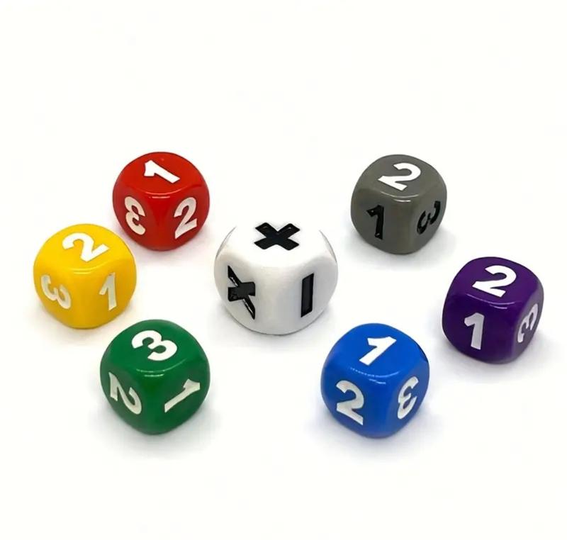 Набор математических обучающих игральных кубиков 7 шт., акрил 13мм./16мм. (разноцветные).