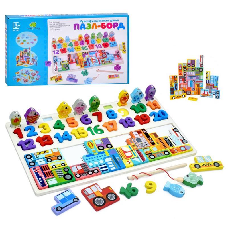 Деревянная игрушка центр развивающий "пазл-борд" md 1981 цифры, фигурки