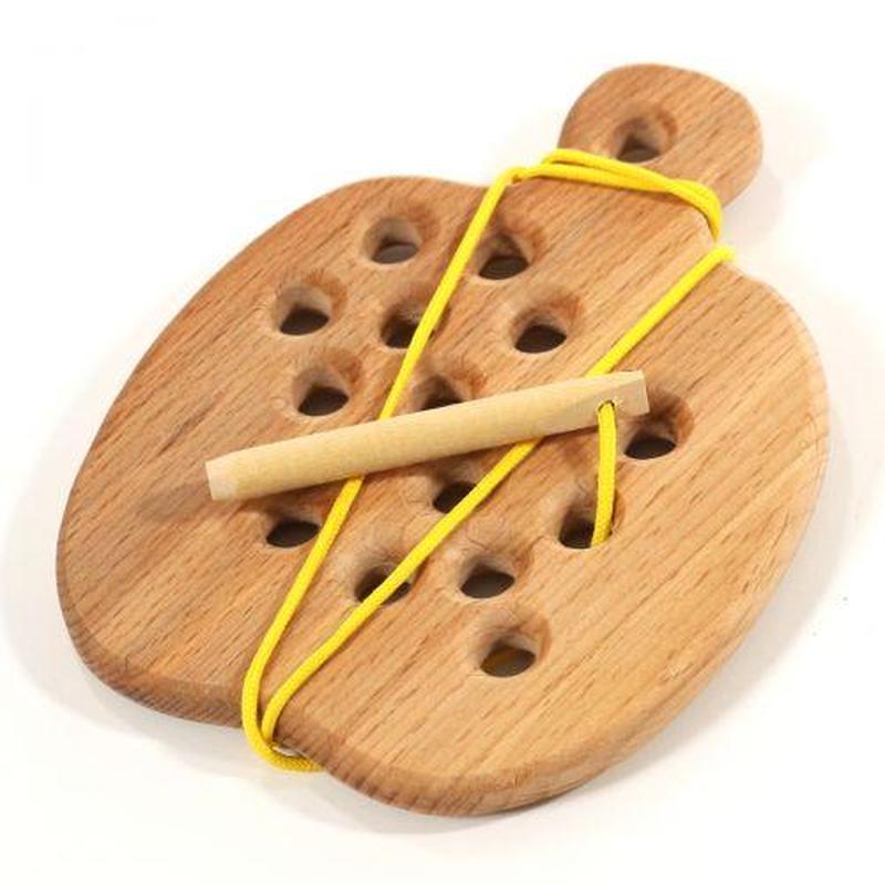 Шнуровка улучшает координацию движений, гибкость кисти, цветовосприятие, усидчивость, концентрацию внимания. Размер игрушки: 1.5х7х13 см. Упаковка: Пленка Цвет: Бежевый Вес в упаковке: 130 г Габариты в упаковке: 13 x 1.5 x 7 см Габариты без упаковки: 13 x 1.5 x 7 см Cтрана производитель: Украина Материал: Дерево Комплектация: Шнуровка
