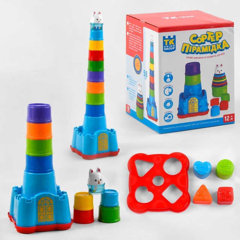 Сортер-пирамидка 68318 от производителя “TK Union Group” - это непросто красочная игрушка, а самый развивающий и обучающий материал для маленьких крох возрастом от 12 месяцев! В комплектацию входит 8 разноцветных чашечек различного диаметра с изображением животных, которые легко соединяются друг с другом, образовывая высокую пирамидку в 58 см, разукрашенную в яркие цвета. Для того чтобы игрушку можно было легко транспортировать, все чашечки поочередно собираются в одну - самую большую, занимая в таком состоянии минимум свободного места. Кроме того, чашки из набора можно использовать для постройки песочных замков с идеально гладкими поверхностями, или для приготовления песочных “тортов” и “кексов” на импровизированной кухне. Также интересная особенность данной модели заключается в том, что основу игрушки можно использовать, как сортер подбирая различные фигурки в сквозные, фигурные отверстия. Подбирая фигурки к прорезям, ребенок будет учиться анализировать и сравнивать различные по форме предметы. Такая игра непременно разовьет логику, мелкую моторику ручек, цветовосприятие, а также много других навыков, которые необходимы для комплексного развития крохи. Пирамидка-сортер выполнена из первичного пластика, который окрашен высококачественными красками абсолютно безопасным для маленьких пользователей! * Характеристики и комплектация товара могут изменяться производителем без уведомления