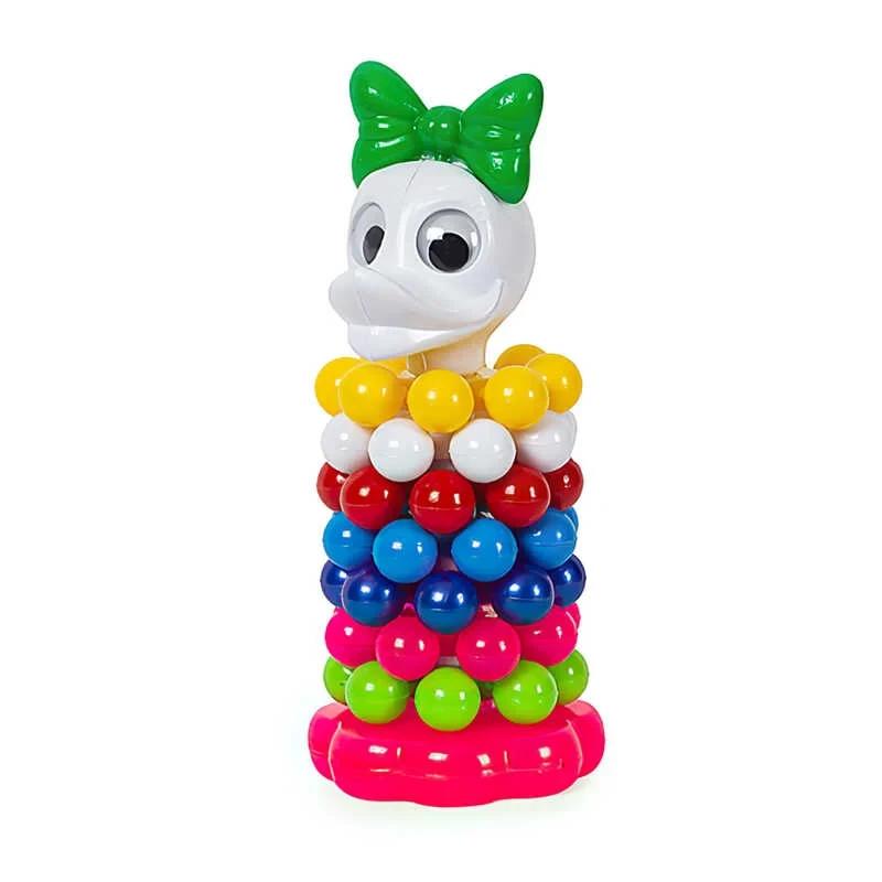 Очаровательная пирамидка для малышей Развивающая пирамидка в форме милой уточки "Уточка-девочка" №3 (модель 1814) станет идеальным подарком для вашего малыша! Эта яркая и интуитивно понятная игра способствует развитию пространственного восприятия, логического мышления и мелкой моторики рук у детей. Игра с пирамидкой вызывает неизменный интерес, так как помогает детям изучать причинно-следственные связи и закономерности. Каждый этап игры является увлекательным и обучает основам логики. - Изготовлена из высококачественного первичного пластика, безопасного для детей; - Экологичный материал не вызывает аллергий и абсолютно без запаха; - Яркие контрастные цвета стимулируют восприятие цвета; - Легкий вес и компактная форма деталей; - Вершина пирамидки украшена головой уточки с съемной кепочкой и подвижными глазами; - Оригинальный дизайн колец с мягкими пластиковыми шариками, которые нужно правильно расположить. Пирамидка поставляется в прозрачной фирменной упаковке, украшенной лентой, что делает ее отличным вариантом для подарка!