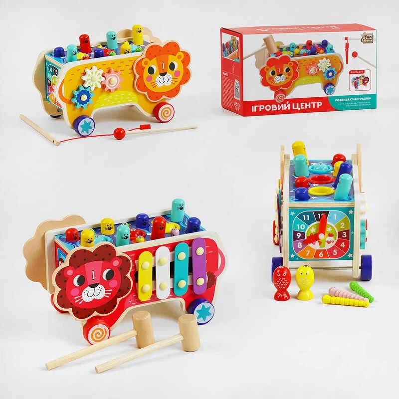 Увлекательный игровой центр для малышей В волшебном мире полезных игрушек особое место занимает наш игровой центр "Львёнок", созданный для маленьких исследователей. Эта игрушка не только развлекать, но и стать настоящим учителем, помогая детям осваивать новые навыки в веселой игровой форме. Игровой центр от "4FUN Game Club Wood" - это настоящая сокровищница знаний, которая стимулирует развитие логического и пространственного мышления, улучшает наблюдательность, внимательность и концентрацию. Благодаря этому, малыши смогут развивать свое воображение и творческие способности, играя с разнообразными элементами. Основные особенности: - Тщательно обработанные элементы с закругленными краями для безопасности детей; - Изготовлено из экологически чистых материалов; - Детали покрыты стойкими и безопасными красками на водной основе; - Возможность использования как каталка; - Оригинальный дизайн в виде веселого львенка; - Верхняя грань с магнитной игрой “Червячки” и стучалкой; - Яркий ксилофон с одной стороны; - Цветные вращающиеся шестерни с другой стороны; - Циферблат с часами на задней стороне; - Комплект включает два молоточка, палочку для ксилофона и магнитную удочку.