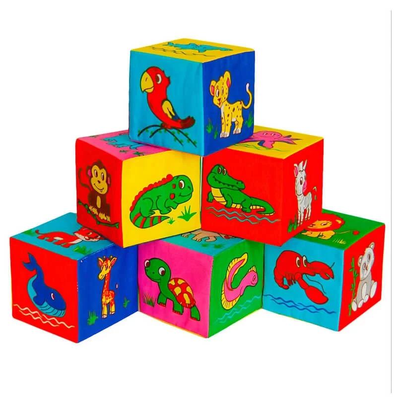 Набор кубиков mc 090601-11 «зоопарк» от «масик», 6 мягких текстильных кубиков в пакете